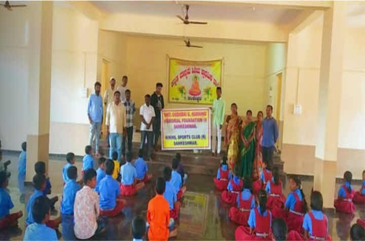 Smt.GGKF Distributed Stationery items for Govt.School students on the occasion of Shri. Naveen Gangareddi's Birthday in Sankeshwar.